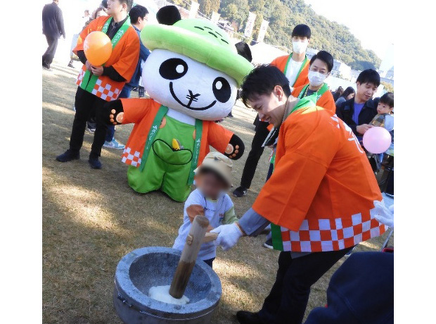 この、「えひめ・まつやま産業まつり」は、愛媛県内の地域産品の展示・即売などにより、各種産業や伝統工芸への理解を深めてもらうことを目的に開催されました。JAバンクえひめ(愛媛県内JA/県信連)では、地域貢献活動の一環として特別協賛し、「子どものもちつき体験ともちの販売」を行いました。